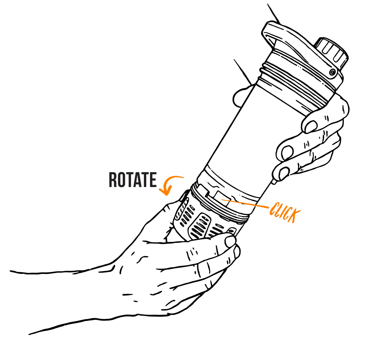 Rotate the cartridge (righty tighty) until you feel the 'lock tab' firmly click into the lock slot. Do not over tighten..