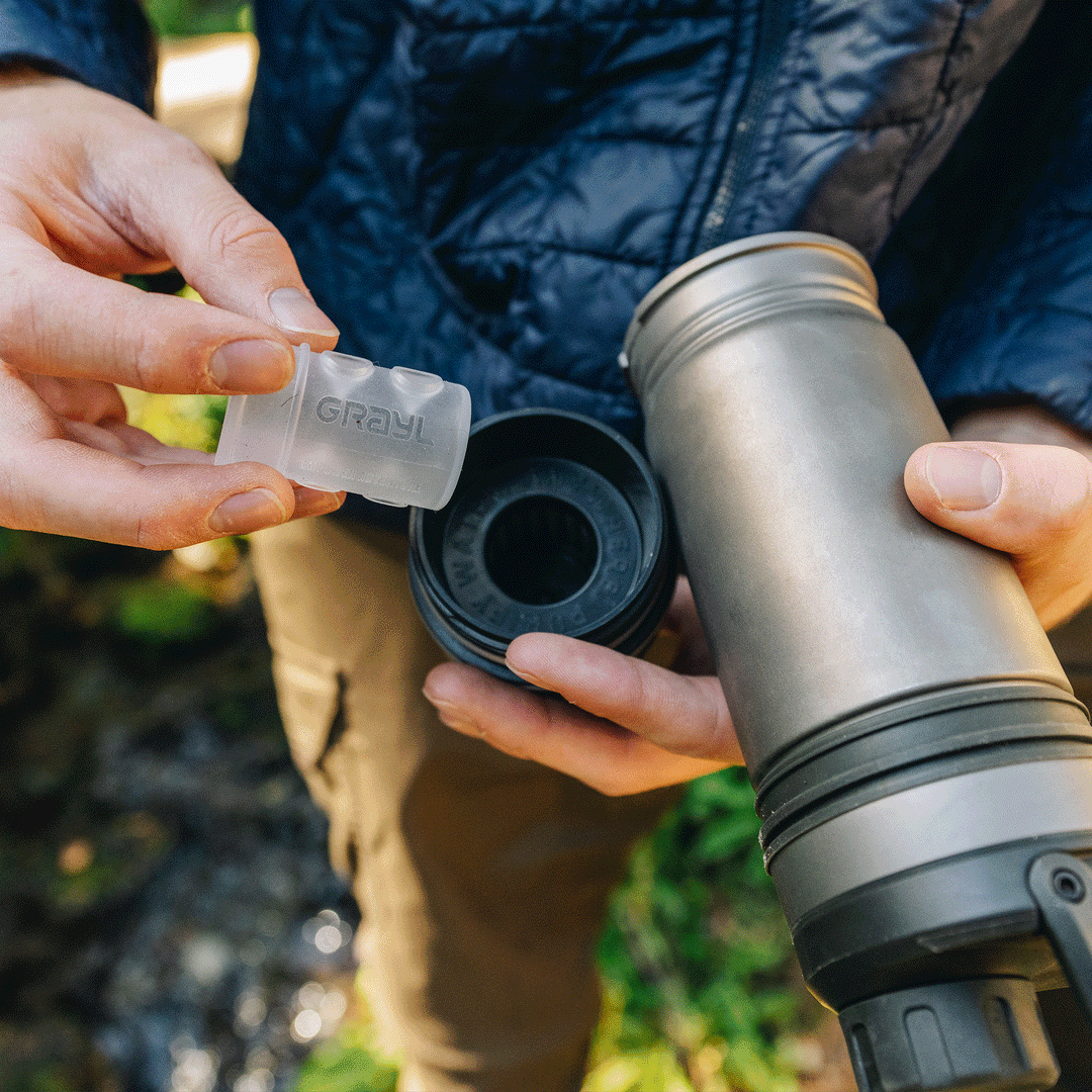 Finally add electrolytes and drink mixes to your Grayl with the One-Way Valve included with the UltraPress Titanium.