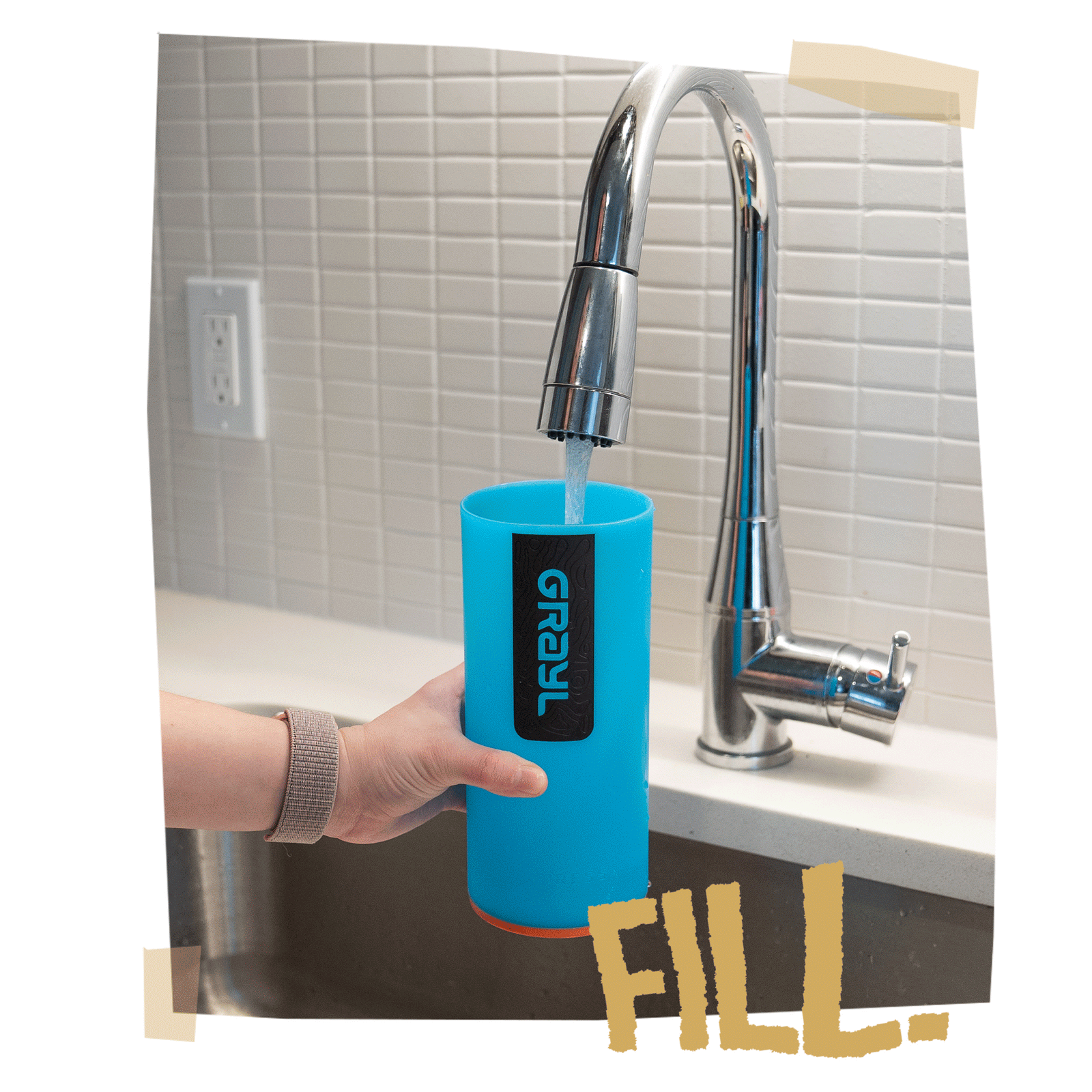 Fill at your sink. That's it. No need to pre-boil your water when using a Grayl Purifier.