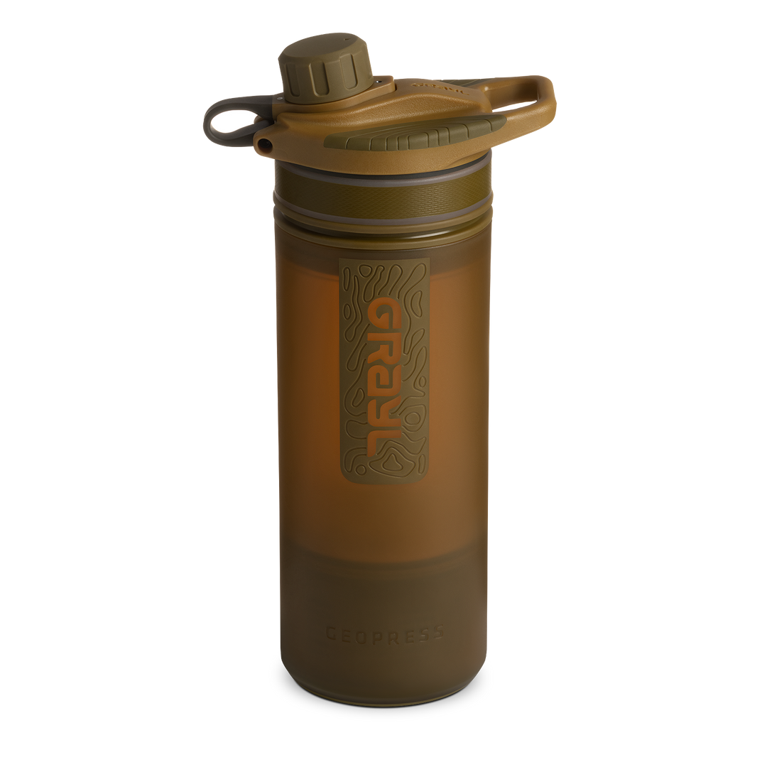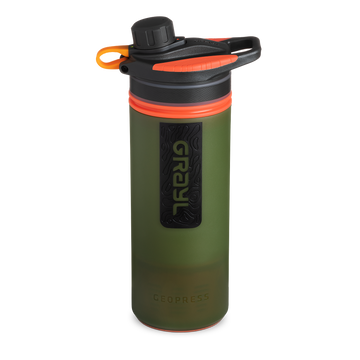 GeoPress® filters and purifies 24 oz of water, ideal for individuals and groups looking for a high capacity. UltraPress® purifies 16.9 oz and is great for individuals with limited space or when traveling with small pack side pockets.
