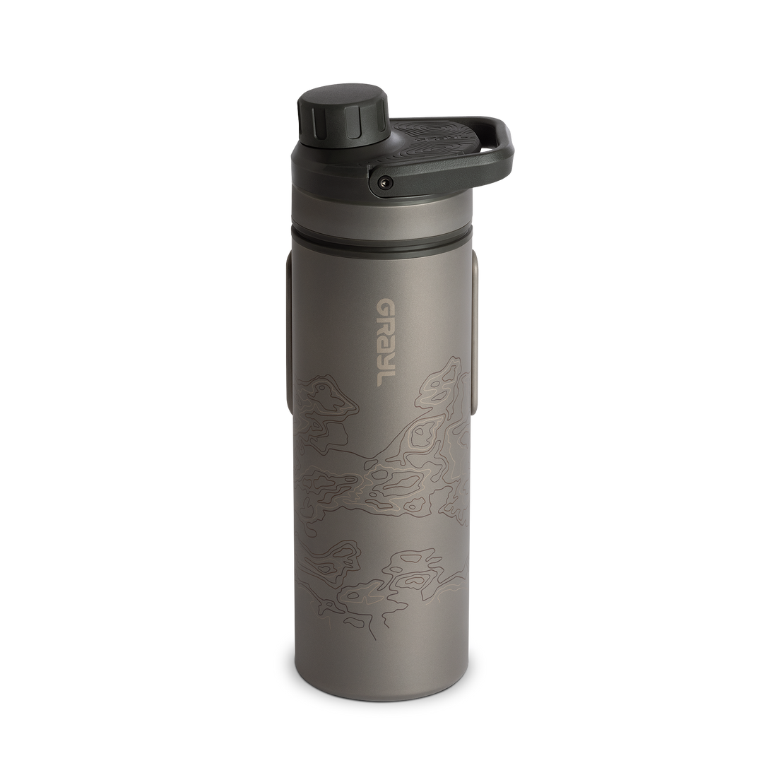 GeoPress® filters and purifies 24 oz of water, ideal for individuals and groups looking for a high capacity. UltraPress® purifies 16.9 oz and is great for individuals with limited space or when traveling with small pack side pockets.