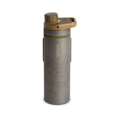 GeoPress® filters and purifies 24 oz of water, ideal for individuals and groups looking for a high capacity. UltraPress® purifies 16.9 oz and is great for individuals with limited space or when traveling with small pack side pockets.