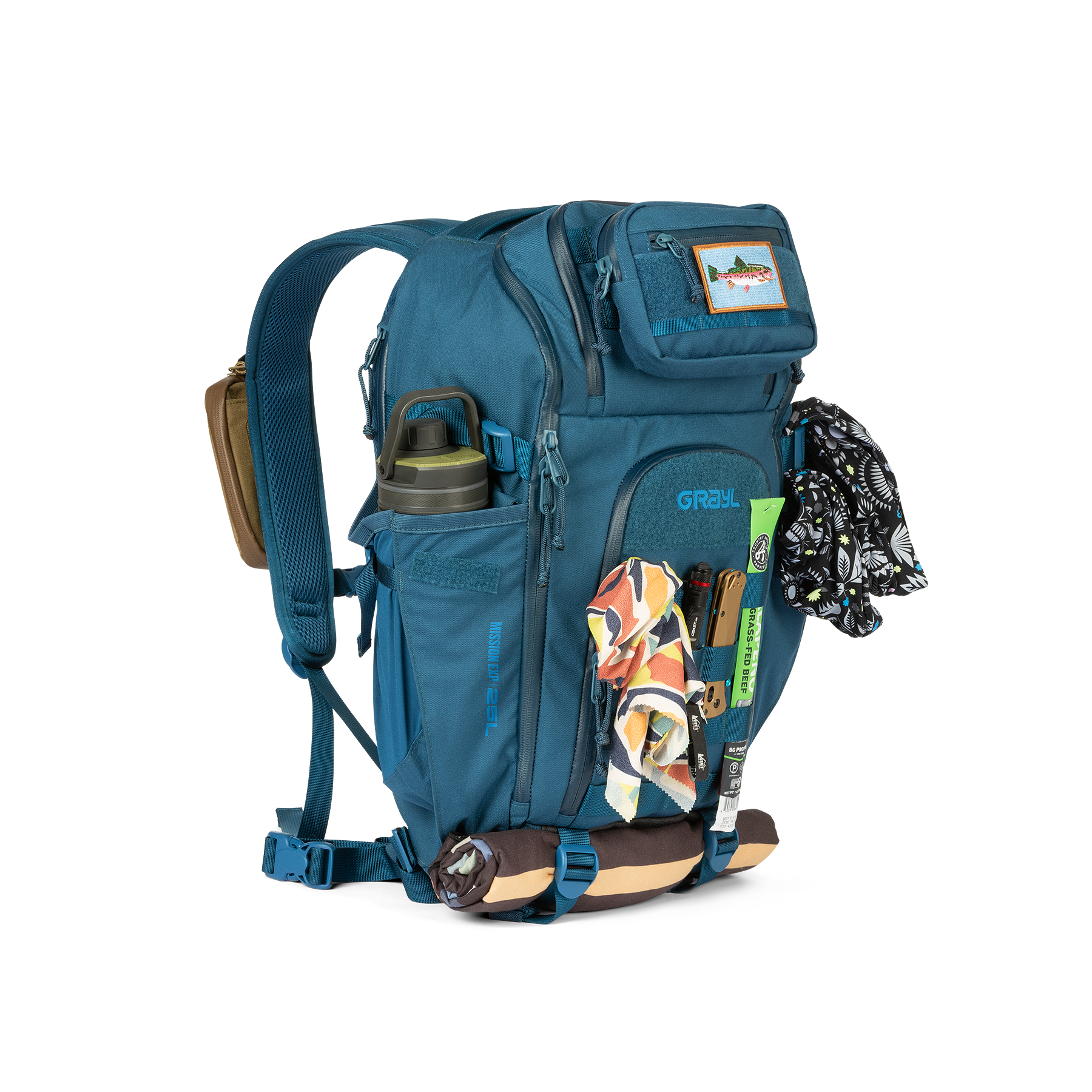 Expanse BottleDrop™ Pockets are featured on both sides of the Mission EXP Backpack. With an adjustable compression strap and flexible stretch woven panels, this pocket is perfect for a Grayl or any gear needing a secure home.