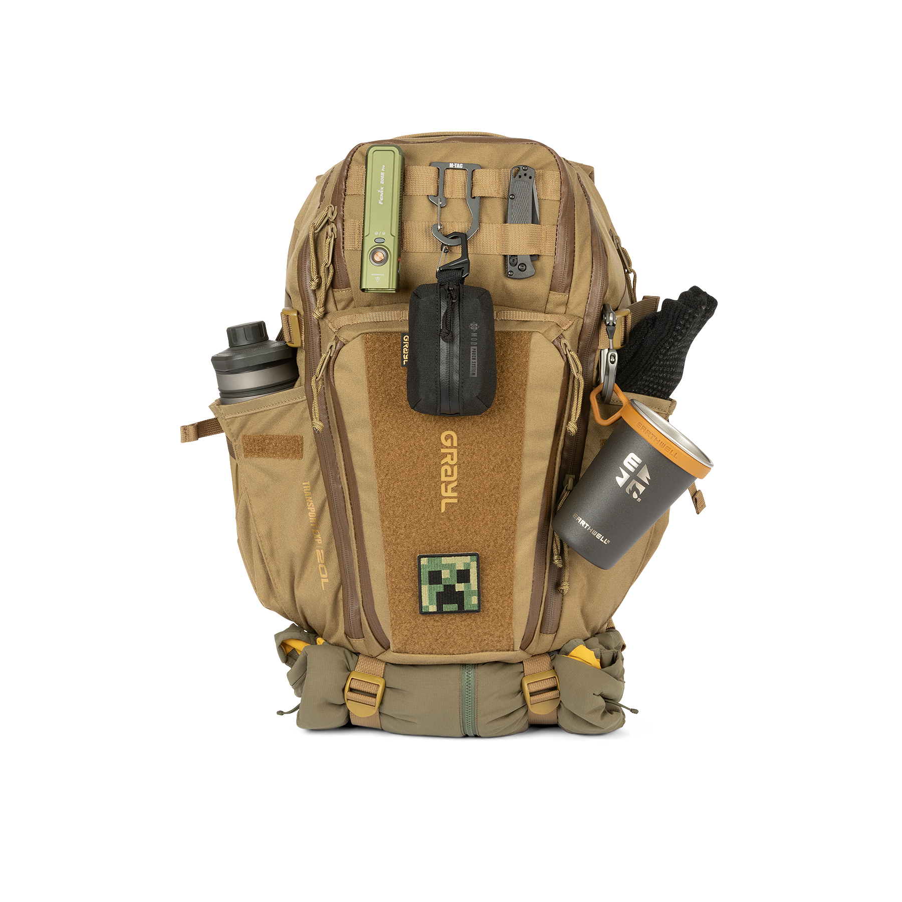Grayl packs have internal small and large zip pockets to keep items organized. External velcro and molle paneling offer customizable grids for G-Mod accessory pouches. Experience drop-in and zip-up organization for a balanced carry of tools and equipment.