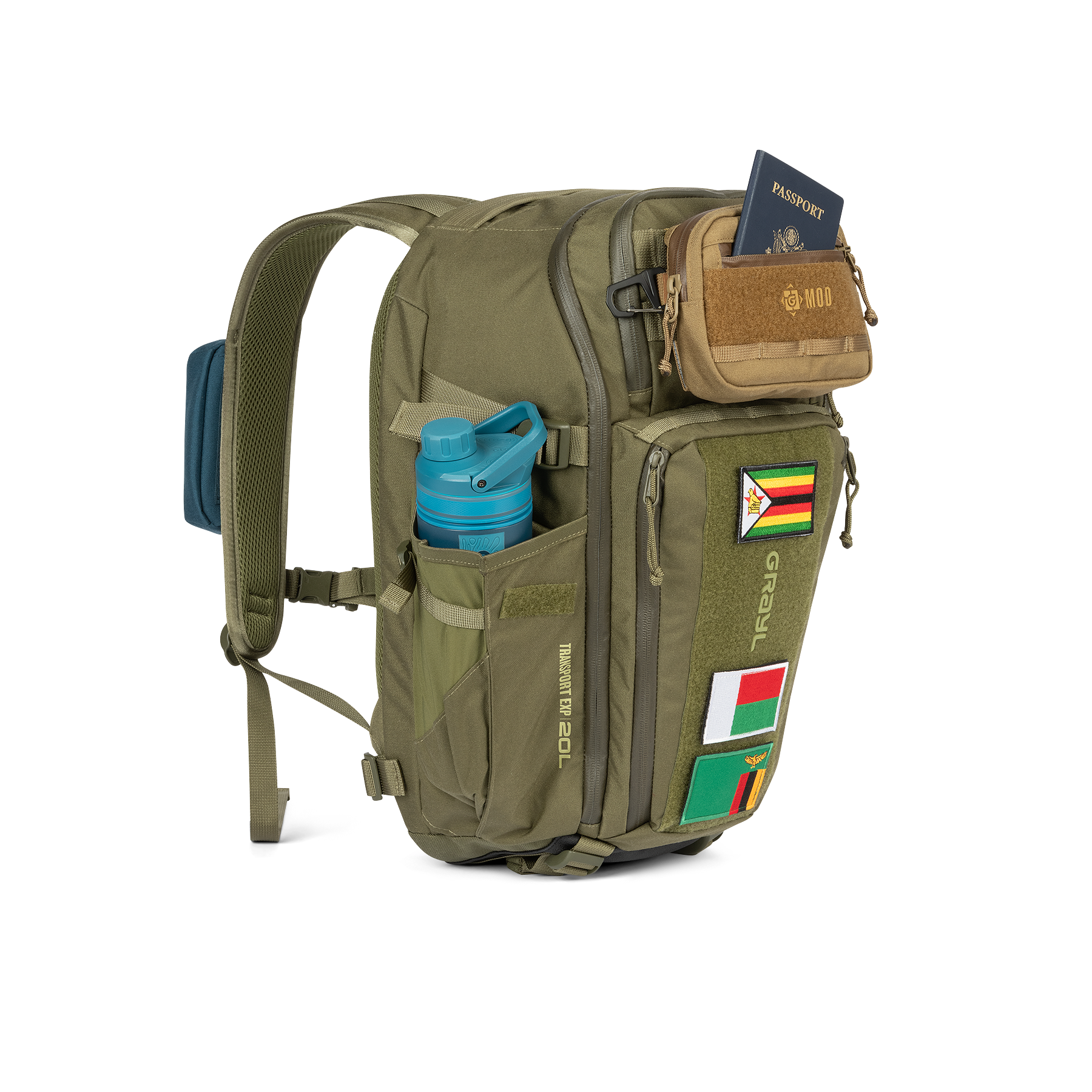 Expanse BottleDrop™ Pockets are featured on both sides of the Transport EXP Backpack. With an adjustable compression strap and flexible stretch woven panels, this pocket is perfect for a Grayl or any gear needing a secure home.